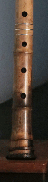 顎,吹き口あたりの太さは9号サイズで太めで重量感があります。。 歌口は黒水牛の金(24k)巻きです。歌口キャップは付属しています。 中継ぎは銀三線藤巻、ジョイントで二つになります。 吹き口の顎あたりは丸形でそのまま管尻まで丸形が続きます。 全体の譜模様は山林の中で付いた譜模様です。 つゆきりと尺八袋はサービス品(色柄指定不可)付き。 つゆきりサービス付き。 |