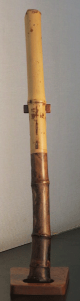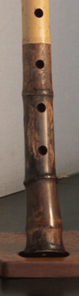 吹き口、あご当たりの太さは7号の太いサイズです。 中継ぎは籐巻き化粧仕上げで中継ぎの抜き差しはできません。 唄口は黒プラスチック を使っています。唄口キャップは付属しています。 吹き口の顎辺りは丸形で菅尻も丸形で株根はやさしい感じです。 管内仕上げは赤漆塗りで仕上げています。 素材は日本九州産真竹材。 通常の尺八は七節ですが六節でビギナー初心者向けに適しています。 中継ぎ~管尻までの自然の譜は生きいて珍しい竹材です。 竹材は年数経過により古色飴色に変化してきます。 つゆきりと尺八袋はサービス品(色柄指定不可)付き。 つゆきりサービス付き。 |